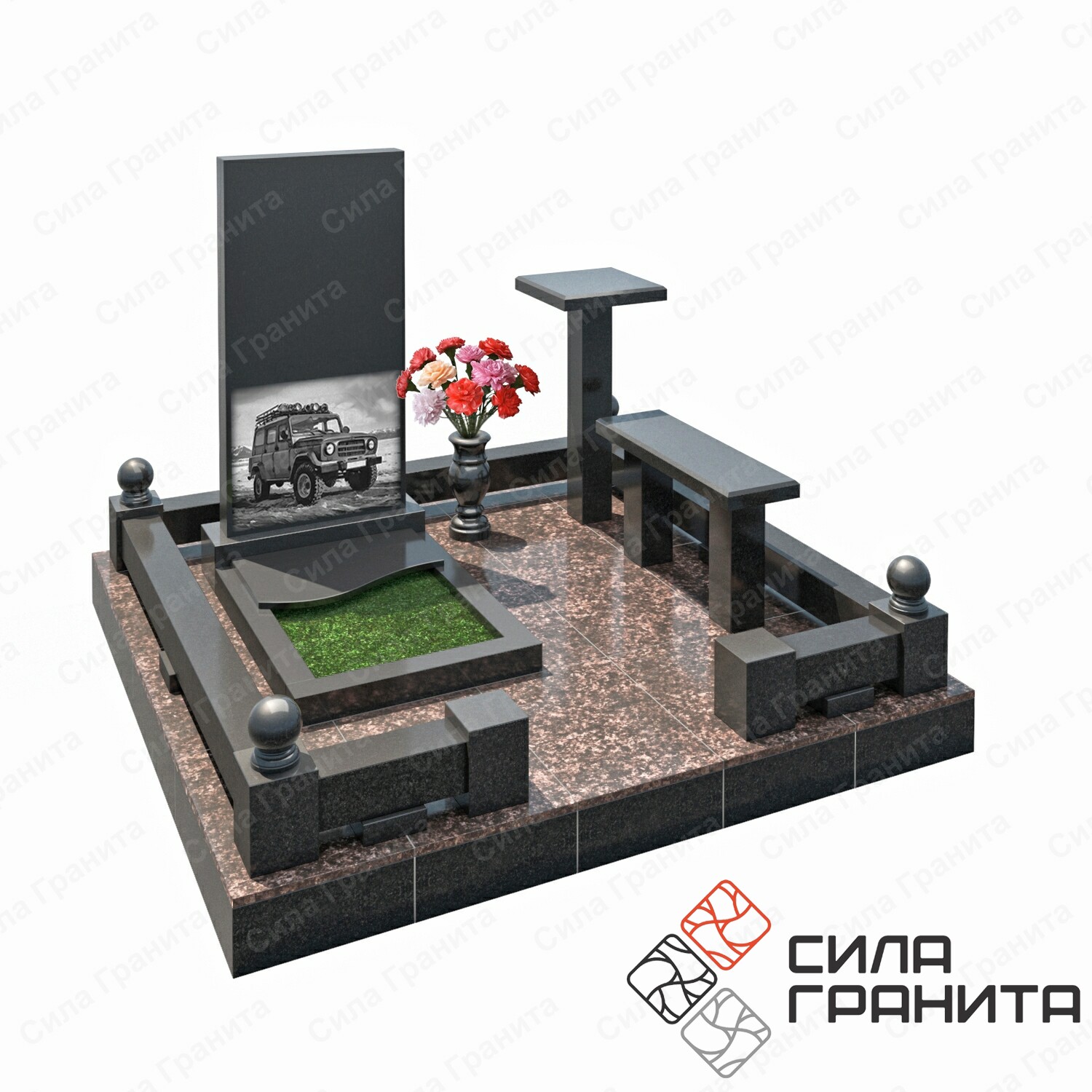 В комплект комплекса на могилу – 557 от Силы Гранита входит: